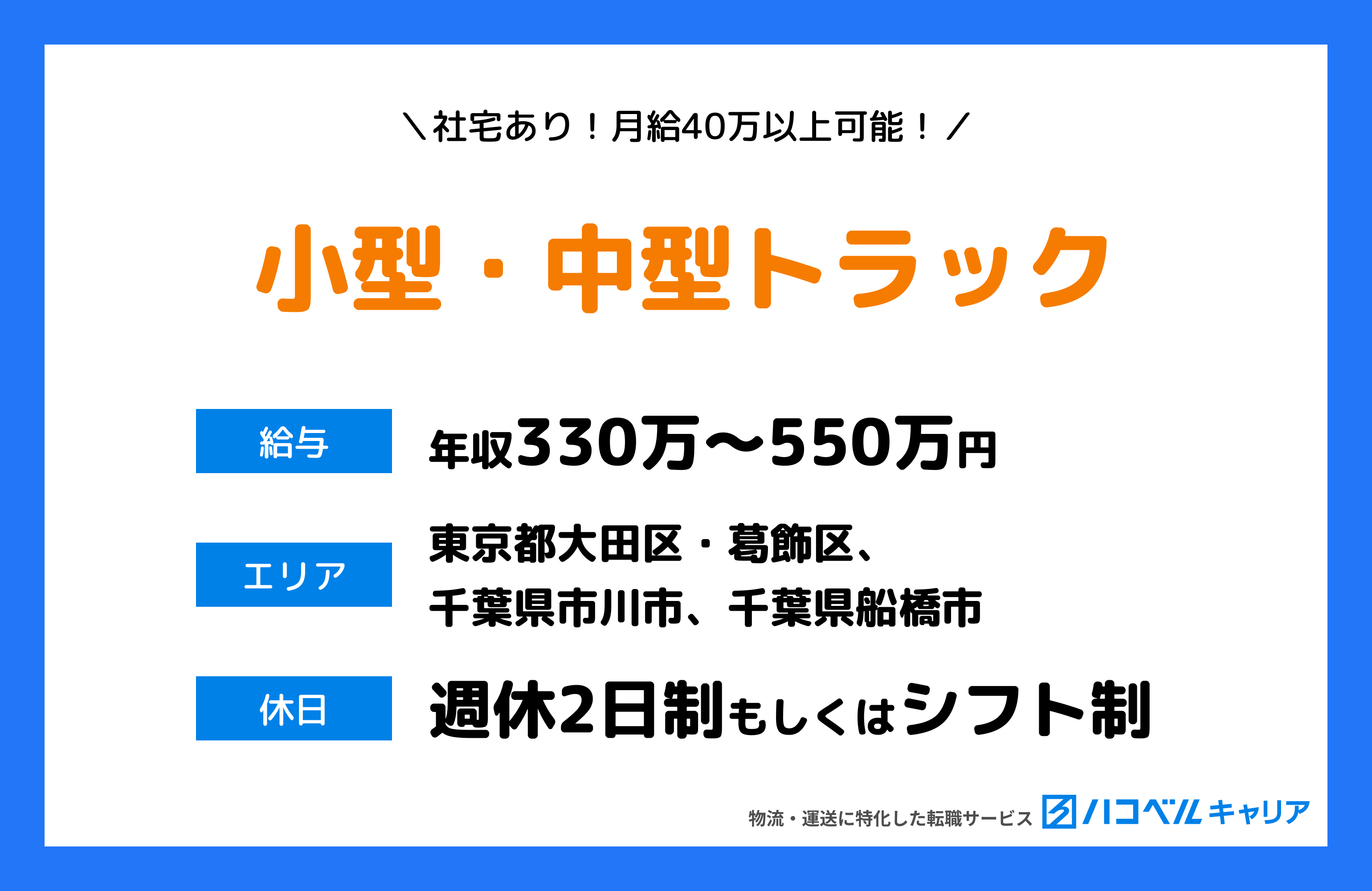 【業務増につき正社員大募集】社宅あり/月給40万以上可能/小型・中型配送ドライバー